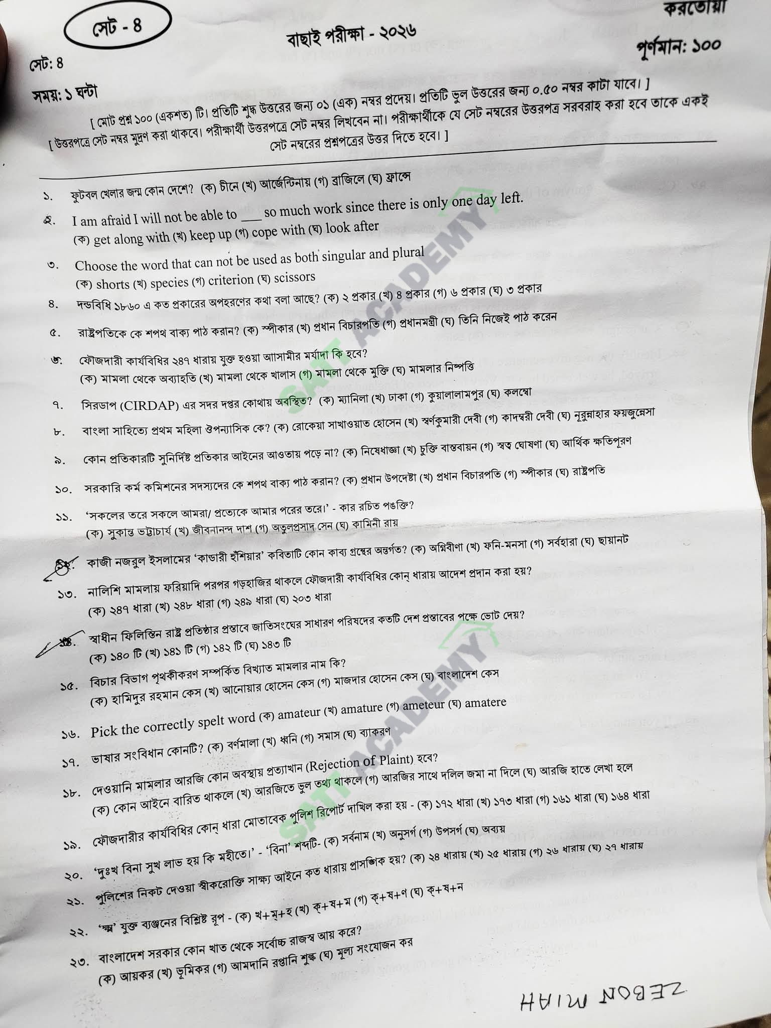 বাংলাদেশ সরকারী কর্ম কমিশন - আইন, বিচার ও সংসদ বিষয়ক মন্ত্রণালয় - লেজিসলেটিভ ও সংসদ বিষয়ক বিভাগ - সহকারী সচিব (ড্রাফটিং) (৯ম গ্রেড) (05-01-2026) এর মূল প্রশ্ন ও সমাধান, Hard Copy প্রশ্ন আপলোড, প্রশ্ন ব্যাংক আপলোড, MCQ