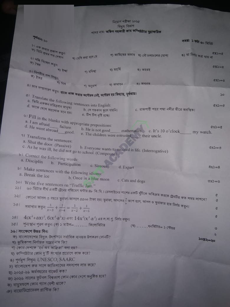 বিদ্যুৎ বিভাগ - অফিস সহকারী কাম কম্পিউটার মুদ্রাক্ষরিক (14-11-2025) এর মূল প্রশ্ন ও সমাধান, Hard Copy প্রশ্ন আপলোড, প্রশ্ন ব্যাংক আপলোড, MCQ