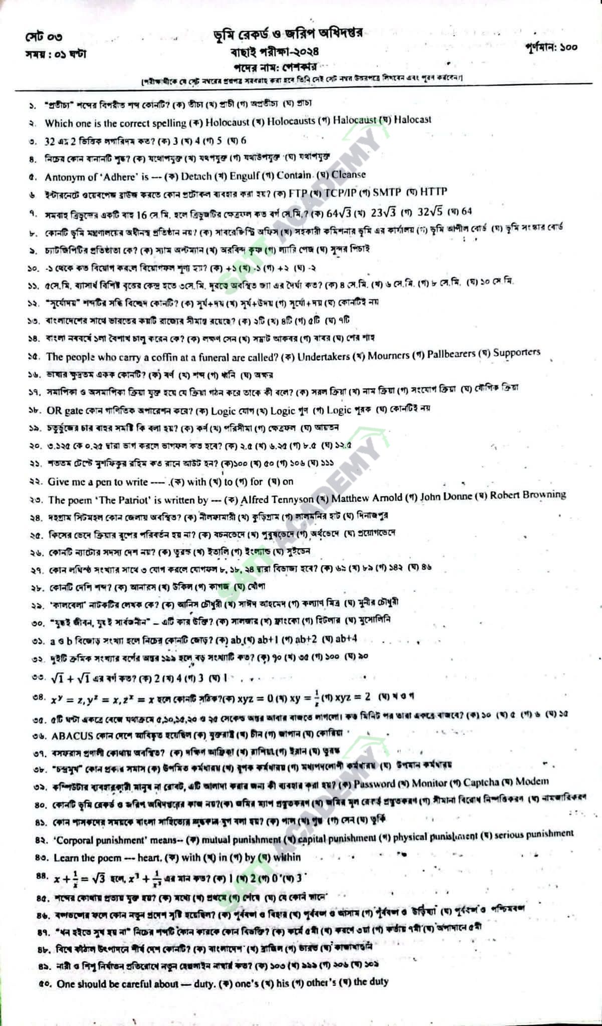 ভূমি রেকর্ড ও জরিপ অধিদপ্তর - পেশকার (28-11-2025) এর মূল প্রশ্ন ও সমাধান, Hard Copy প্রশ্ন আপলোড, প্রশ্ন ব্যাংক আপলোড, MCQ