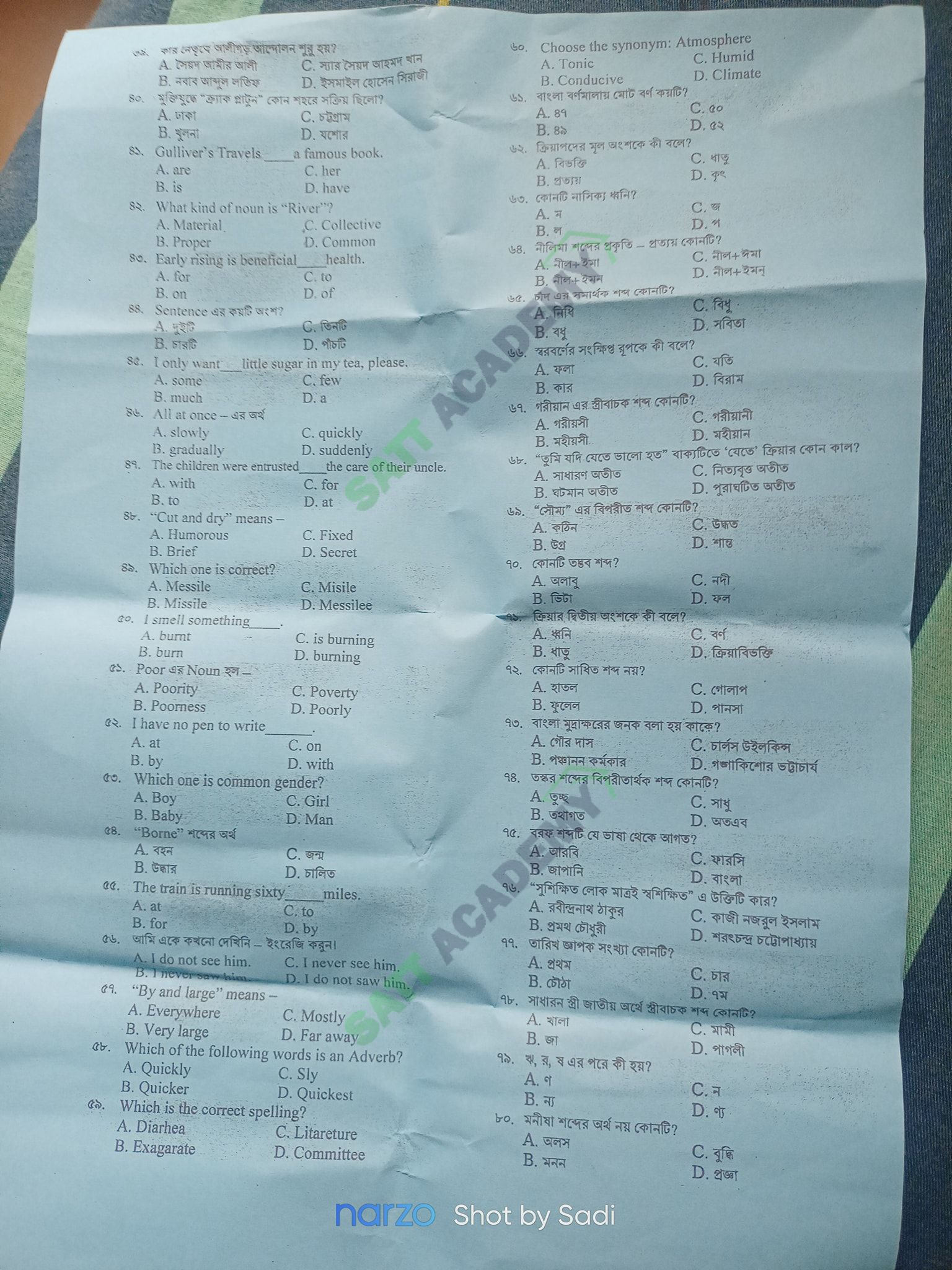 মাদকদ্রব্য নিয়ন্ত্রণ অধিদপ্তর - অফিস সহায়ক (01-11-2025) এর মূল প্রশ্ন ও সমাধান - Hard Copy প্রশ্ন আপলোড করুন সহজেই | Satt Academy