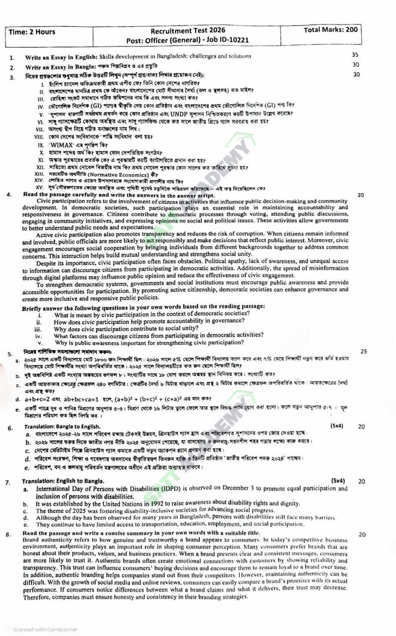 Combined 6 Banks & 2 Financial Institutions - Officer (General) (20-02-2026) এর মূল প্রশ্ন ও সমাধান, Hard Copy প্রশ্ন আপলোড, প্রশ্ন ব্যাংক আপলোড, MCQ