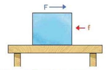 ধরা যাক, একটা টেবিলে কোনো একটা কাঠের টুকরো রয়েছে এবং সেই কাঠের টুকরোর ওপর বল প্রয়োগ করে সেখানে ত্বরণ সৃষ্টি করতে চাচ্ছি। ধরা যাক,3.03 চিত্রে যেভাবে দেখানো হয়েছে সেভাবে ভরটির ওপর বাম থেকে ডানে F বল প্রয়োগ করছি, দেখা যাবে কাঠের টুকরোয় টেবিলের সাথে কাঠের টুকরোর ঘর্ষণের কারণে একটা ঘর্ষণ বল f তৈরি হয়েছে এবং সেটি ডান থেকে বাম দিকে কাজ করে প্রয়োগ করা বলটিকে কমিয়ে দিচ্ছে।