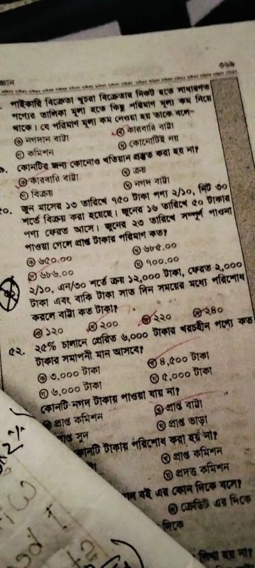 ৭৫০ টাকার পণ্য ২/১০, ০/৩০ শর্তে জুন মাসের ১৩ তারিখে বাকিতে বিক্রয় করা হয়েছে। জুনের ১৬ তারিখে ৫০ টাকার পণ্য ফেরত আসে। জুনের ২৩ তারিখে সম্পূর্ণ পাওনা প্রাপ্তি সাপেক্ষে কত টাকা প্রাপ্ত হয়েছিল? ৫৮. ক.৭০০... View more