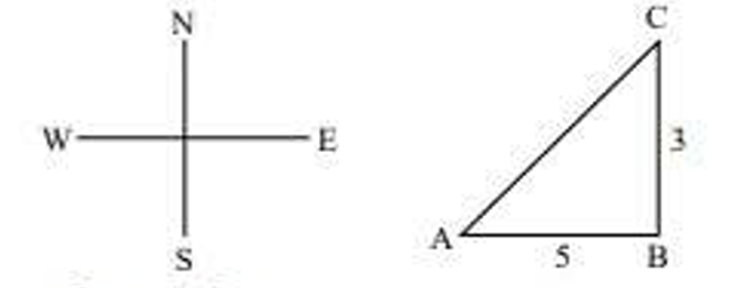 A man walks 5 km east, then 3 km north. How far is he from the starting point?